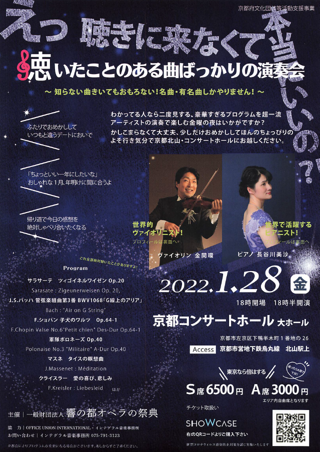 *新型コロナ”オミクロン株”拡大の影響により下記コンサート中止となりました。