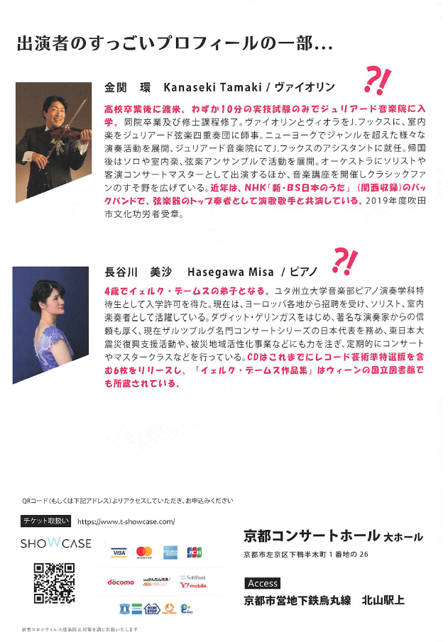 京都コンサートホール大ホールにてコンサート開催します。