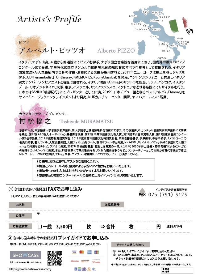 2020年11月18日開催、イタリア人ピアニスト アルベルト・ピッツオ × 京都出身カウンターテナー 村松稔之 のスペシャルリサイタルに協力します。