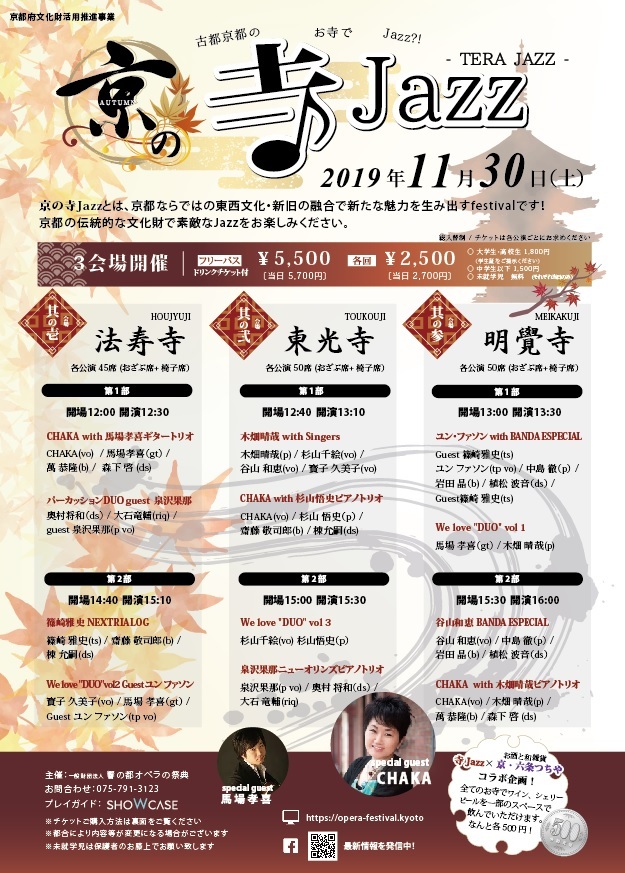2019年11月30日開催、「京の寺Jazz」を主催しました。