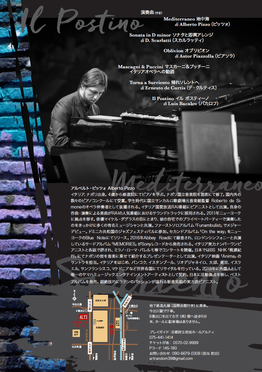 2019年4月19日開催、ルベルト・ピッツォ ピアノコンサートイン京都「アモーレナポリより愛をこめて」に特別協賛しました。