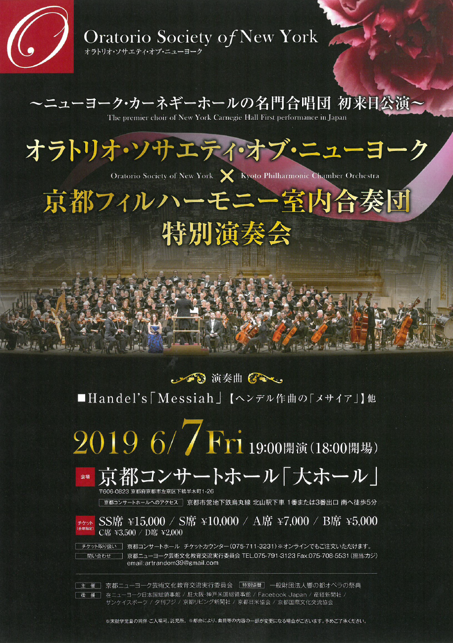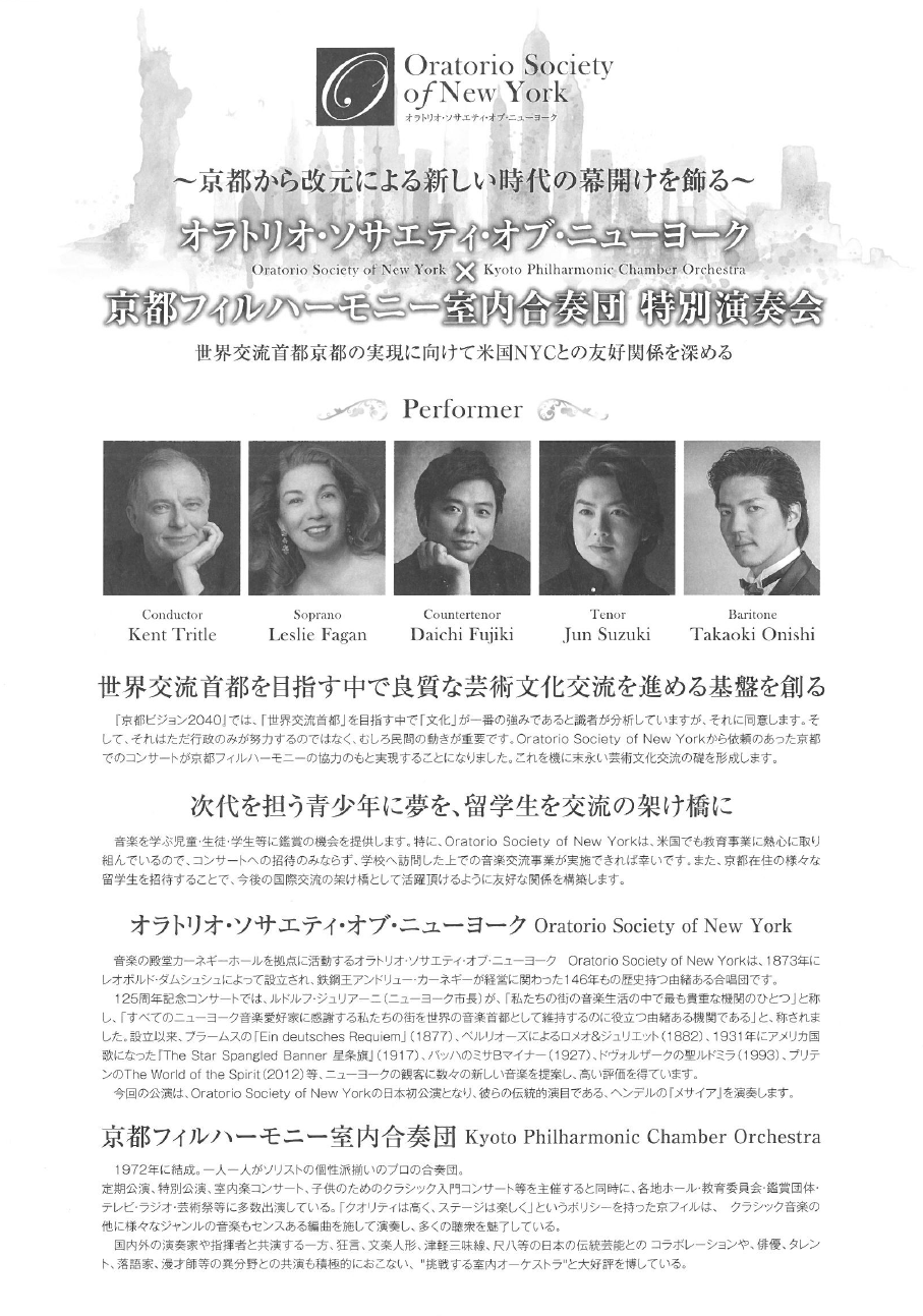 2019年6月7日開催 オラトリオ・ソサエティ・オブ・ニューヨーク×京都フィルハーモニー室内合奏団特別演奏会に特別協賛しました。